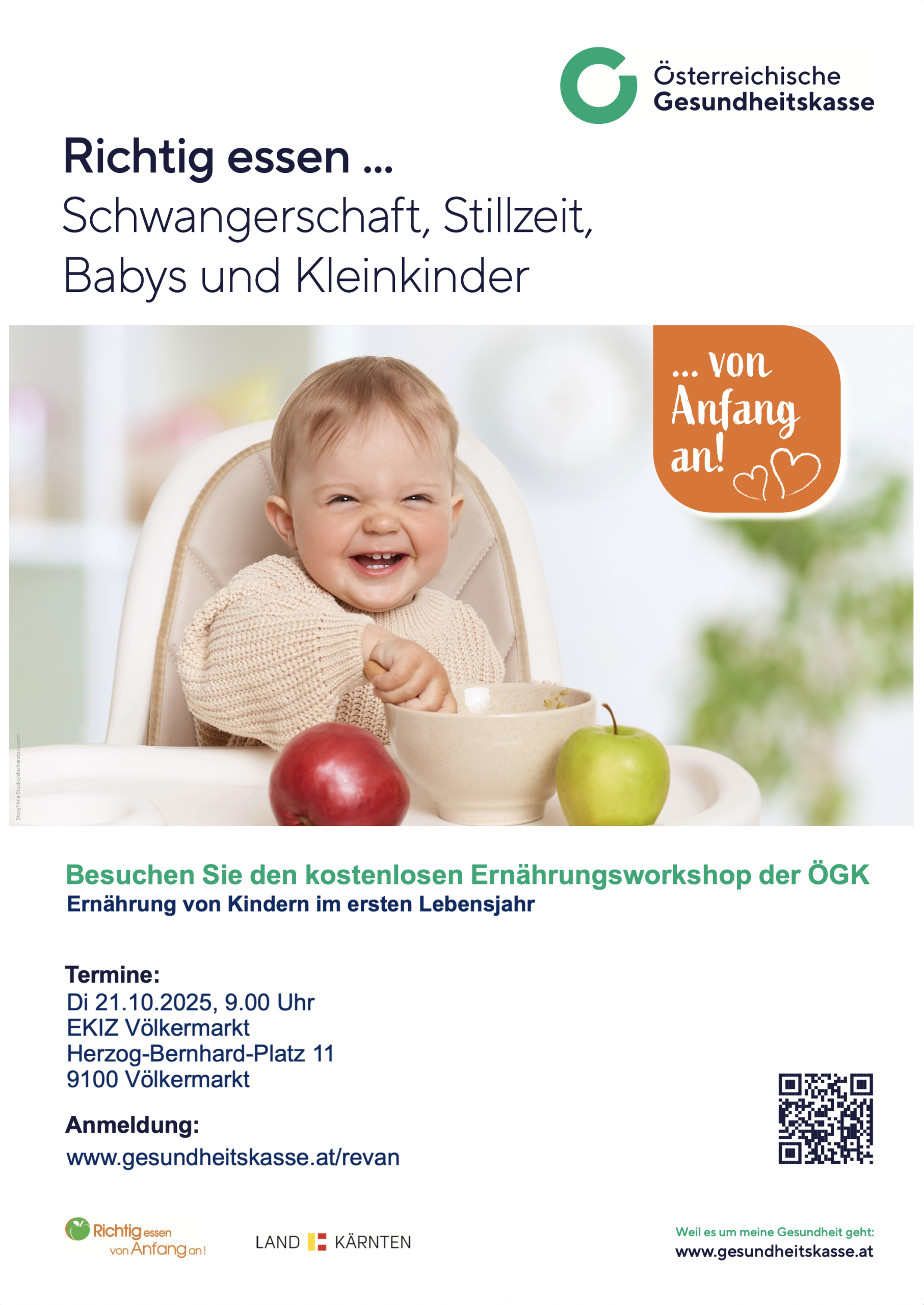 Unser Baby lernt essen! Um das 6. Lebensmonat reichen Muttermilch und Säuglingsnahrungen alleine nicht mehr aus, damit ein Kind gut gedeihen kann. Doch wie geht es jetzt am besten weiter? Diese und viele weitere Fragen rund um die bunte Babykost werden in diesem kostenlosen Workshop praxisnah beantwortet.